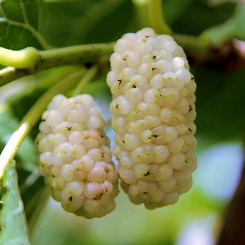 Дозрівання ягід припадає на початок-кінець липня. Особлива ця шовковиця довгими гілками, схиленими до землі. Плоди чорні,білі та рожеві в залежності від сорту дуже смачні, довжиною до 10 см.