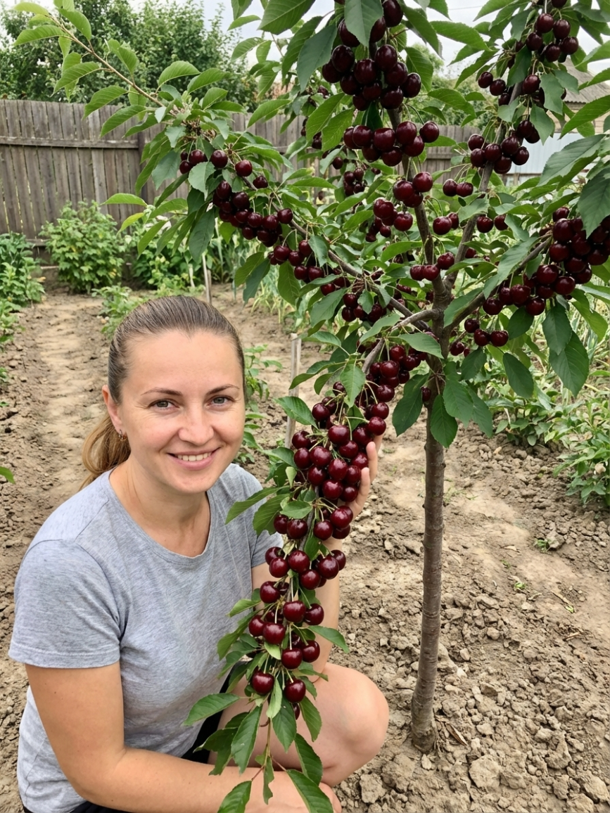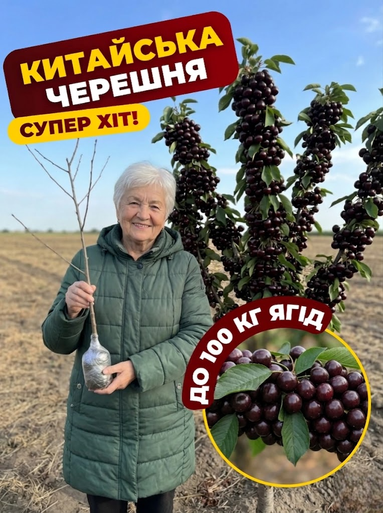 Гілки ломляться від ягід — а дерево не вище 2 метрів. Саджанці 1–1.2 м. Перший урожай вже на 2-й рік.